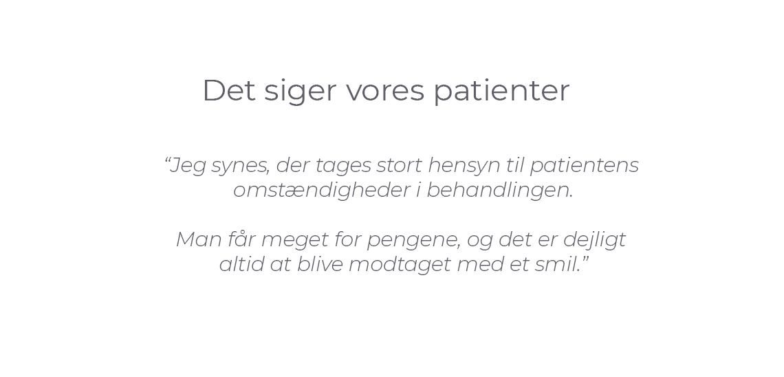 Vores patienter kommer primært fra Vejle, Egtved, Jelling og Billund, men også Kolding, Horsens, Fredericia og Middelfart.